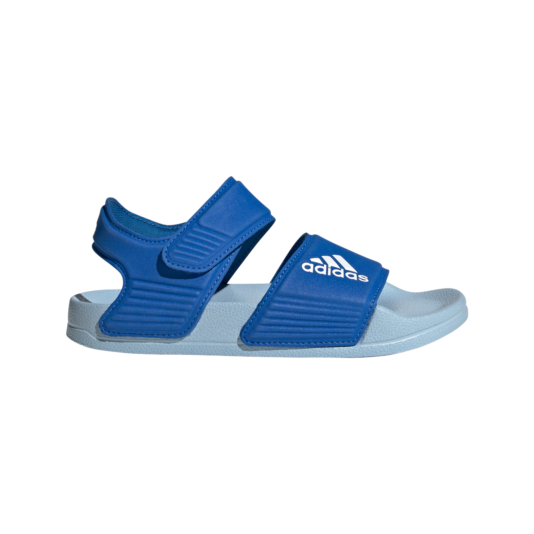 Inspired by classic Adilette slides, these kids' adidas sandals are perfect for sunny days of play in and out of the water. A hook-and-loop strap creates an easy on and off. The quick-drying upper lets them play in comfort until they're back on dry land.