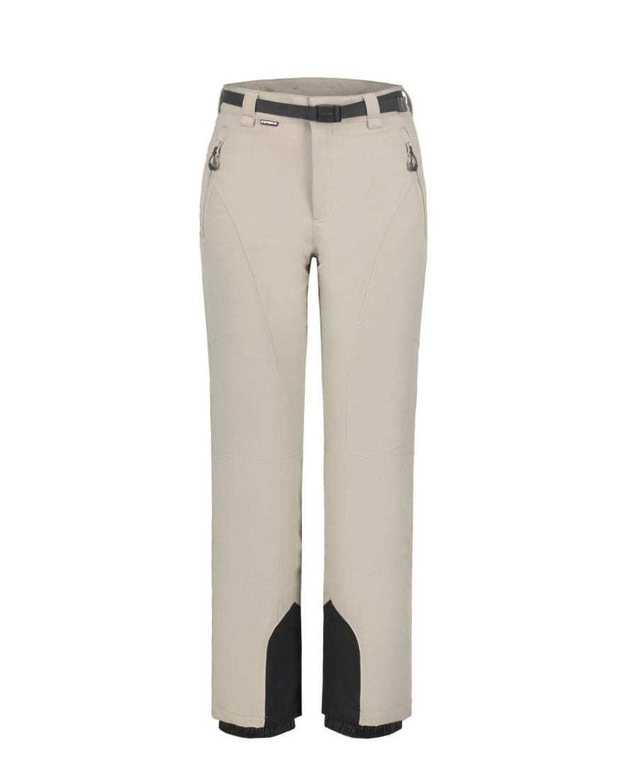 Icepeak wadded trousers for women. Slim fit. Articulated knees. Reinforcements at leg bottoms. Zips at leg bottoms. Fixed snow gaiters in the leg openings. Extra high back. Water column 10 000 mm. Breathability 10 000 g\m2\24h. This A.W.S. EXTREME product meets the needs of active outdoor people even in extreme conditions. Structural details and protective materials make the product functional in every situation, no matter the weather. The 4-way stretch material stretches in all directions giving maximum freedom of movement. All seams have been taped to make the product perfectly waterproof. Made of a 2-layer fabric, in which a waterproof membrane is bonded to a multifunctional material. The fabric surface has been treated with a water-repellent finish. This windproof material provides optimal wind protection and warmth. Light insulation.