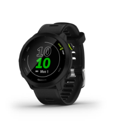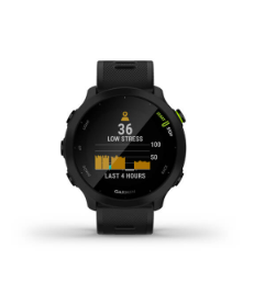 - While you’re out and about, Forerunner 55 tracks steps, intensity minutes and more 1Find out if you’re having a calm, balanced or stressful day.