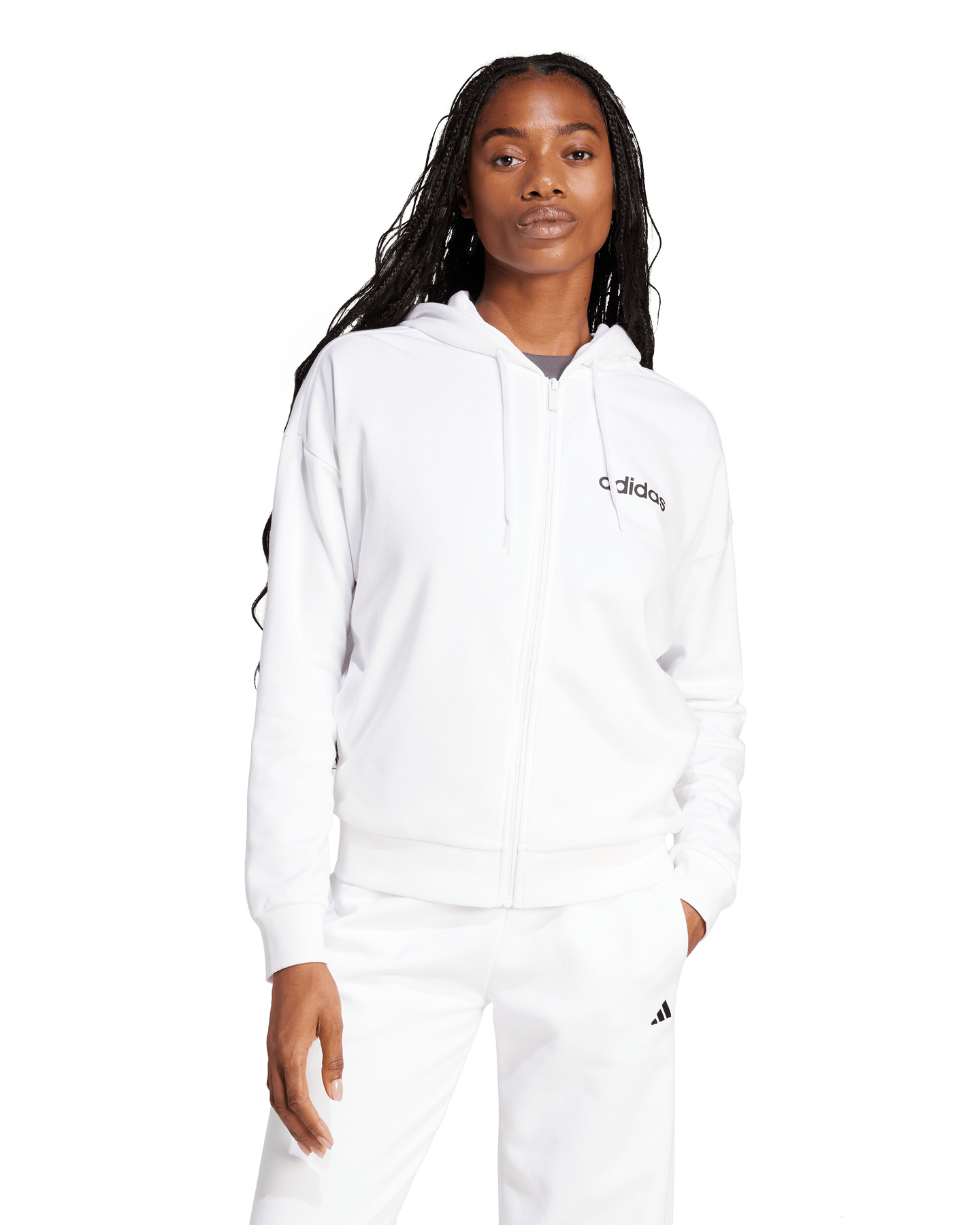 This adidas hoodie loves to mix and match. Made from soft French terry, it features a streamlined design that pairs well with all your favourite outfits. An adidas logo on the chest provides a sporty finish. By choosing recycled, we are able to reuse materials that have already been created, which helps to reduce waste. Renewable materials choices will help us to remove our reliance on finite resources. Our products made with a blend of recycled and renewable materials feature at least 70% total of these materials.